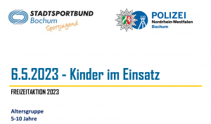 Altersgruppe 10-15 Jahre (Mindestgröße Körpergröße :1,20m) …. Wichtig! Zur Teilnahme ist eine von den Eltern unterschriebene Einverständniserklärung zwingend erforderlich! Den entsprechenden Vordruck gibt es im Büro der Sportjugend oder online unter www.sportjugend-bochum.de! Das Angebot ist allein für Kinder im Alter von 10-15 Jahren und gilt nicht für Erwachsene! Mit Vorlage
